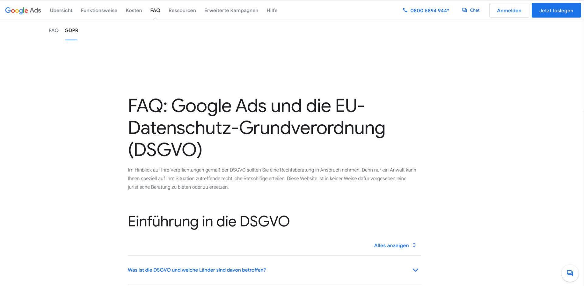 Das Analysetool Google Analytics liefert unter anderem detaillierte Informationen über Besucher, die durch Google Ads auf Ihre Website gelangt sind. Grundsätzlich ist das Speichern von personenbezogenen Daten in Analytics untersagt. Allerdings schließt Google die IP-Adresse hier nicht mit ein – anders als die Datenschutz-Grundverordnung, die die IP-Adresse zu den personenbezogenen Daten zählt. Um also eine DSGVO-konforme Nutzung zu gewährleisten, muss die IP-Adresse anonymisiert werden.